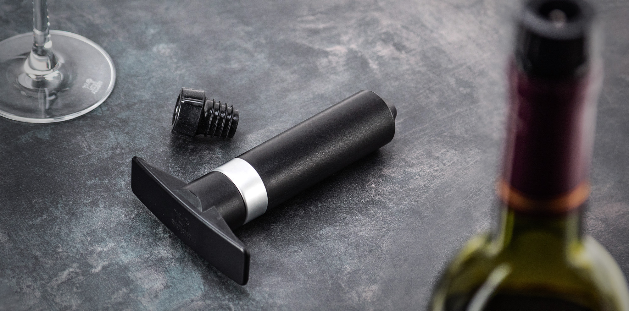 Zu lange der Luft ausgesetzt, verliert der Wein seine Aromen. Die Weinpumpe von Peugeot entlüftet teilweise die Luft aus der Weinflasche oder verleiht der Champagnerflasche Druck, damit sie länger hält.